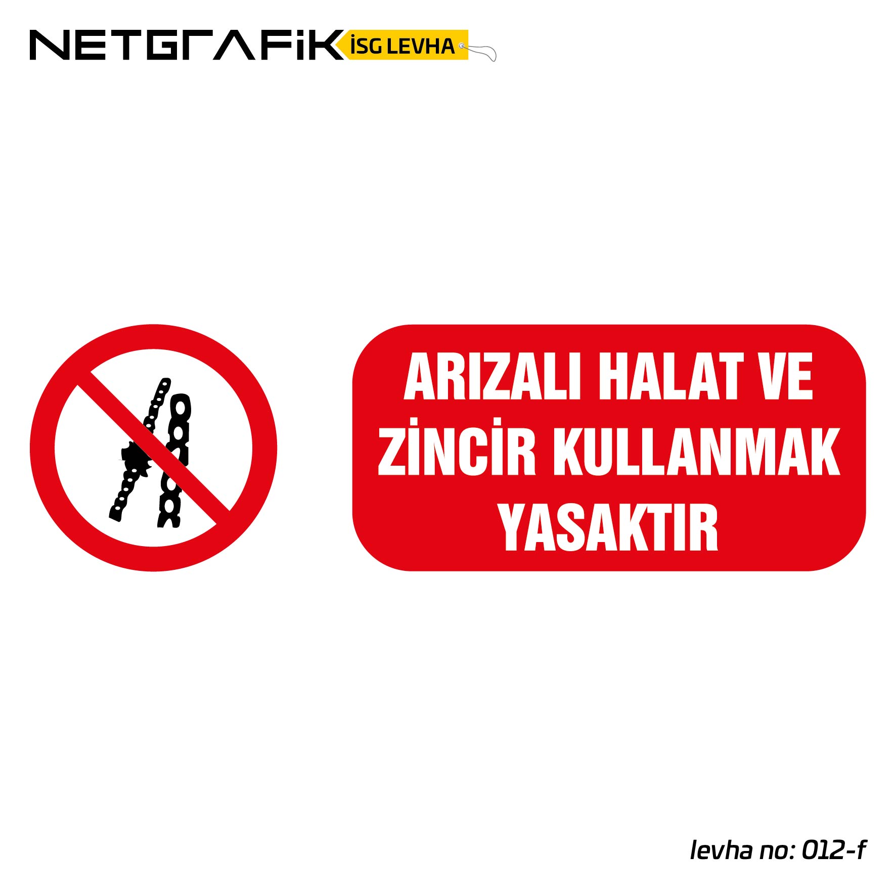 Arızalı Halat ve Zincir Kullanmak Yasaktır | İş Güvenliği Levhası: 012-f