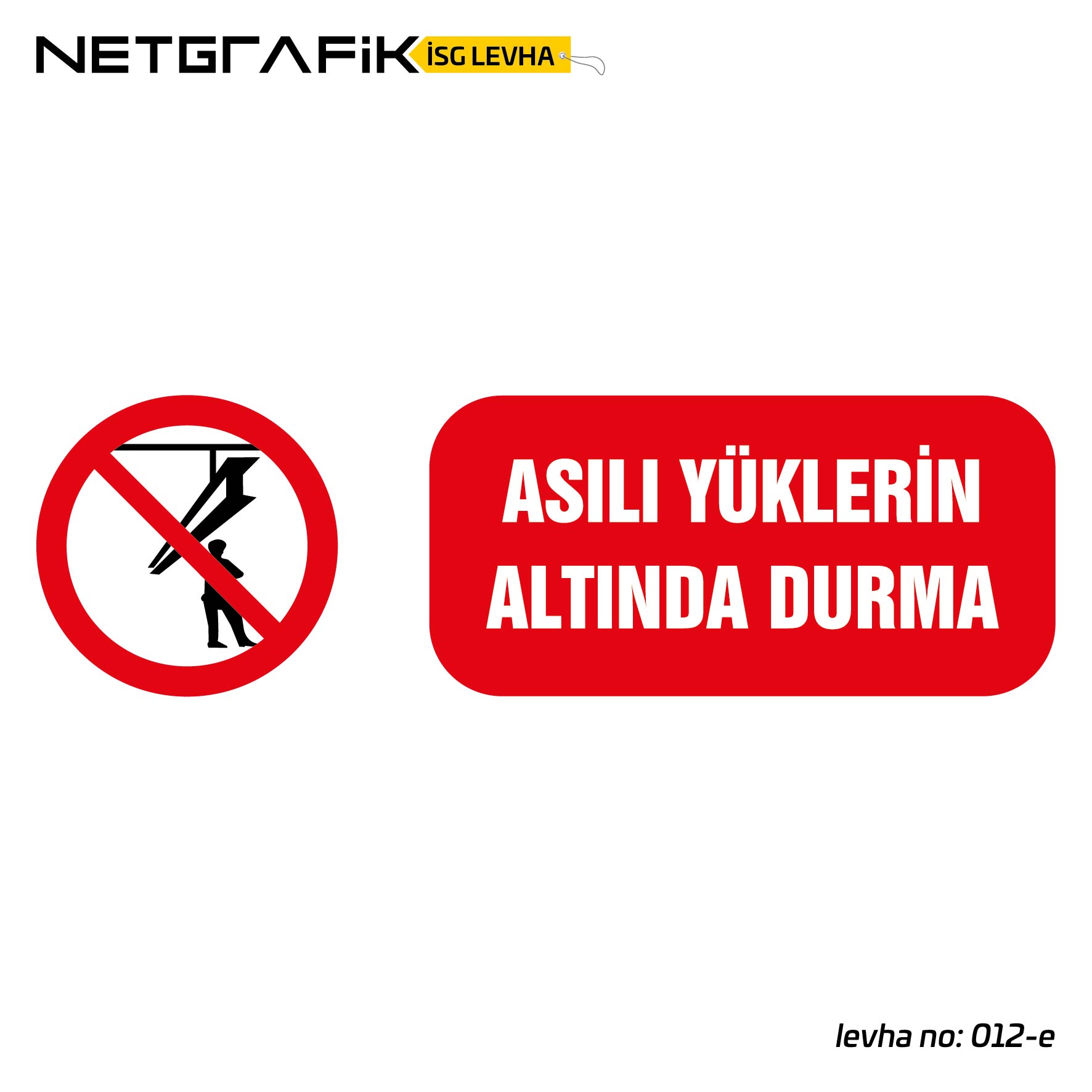 Asılı Yüklerin Altında Durma | İş Güvenliği Levhası: 012-e